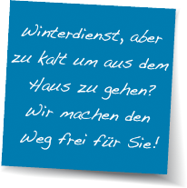 Schnell und zuverlässig räumen wir Gehwege, Zufahrten,Parkplätze und Freiflächen. Anschließend wird mit Hilfevon Streumitteln die Rutschgefahr gemindert.